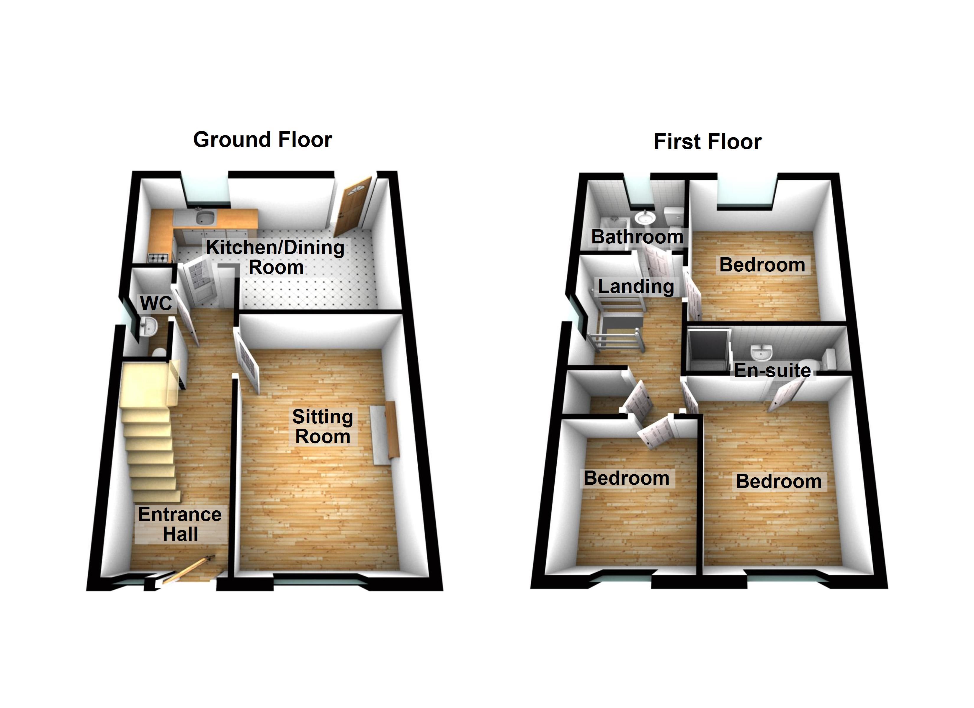 First floor: 3 no. bedrooms, 1 ensuite and bathroom